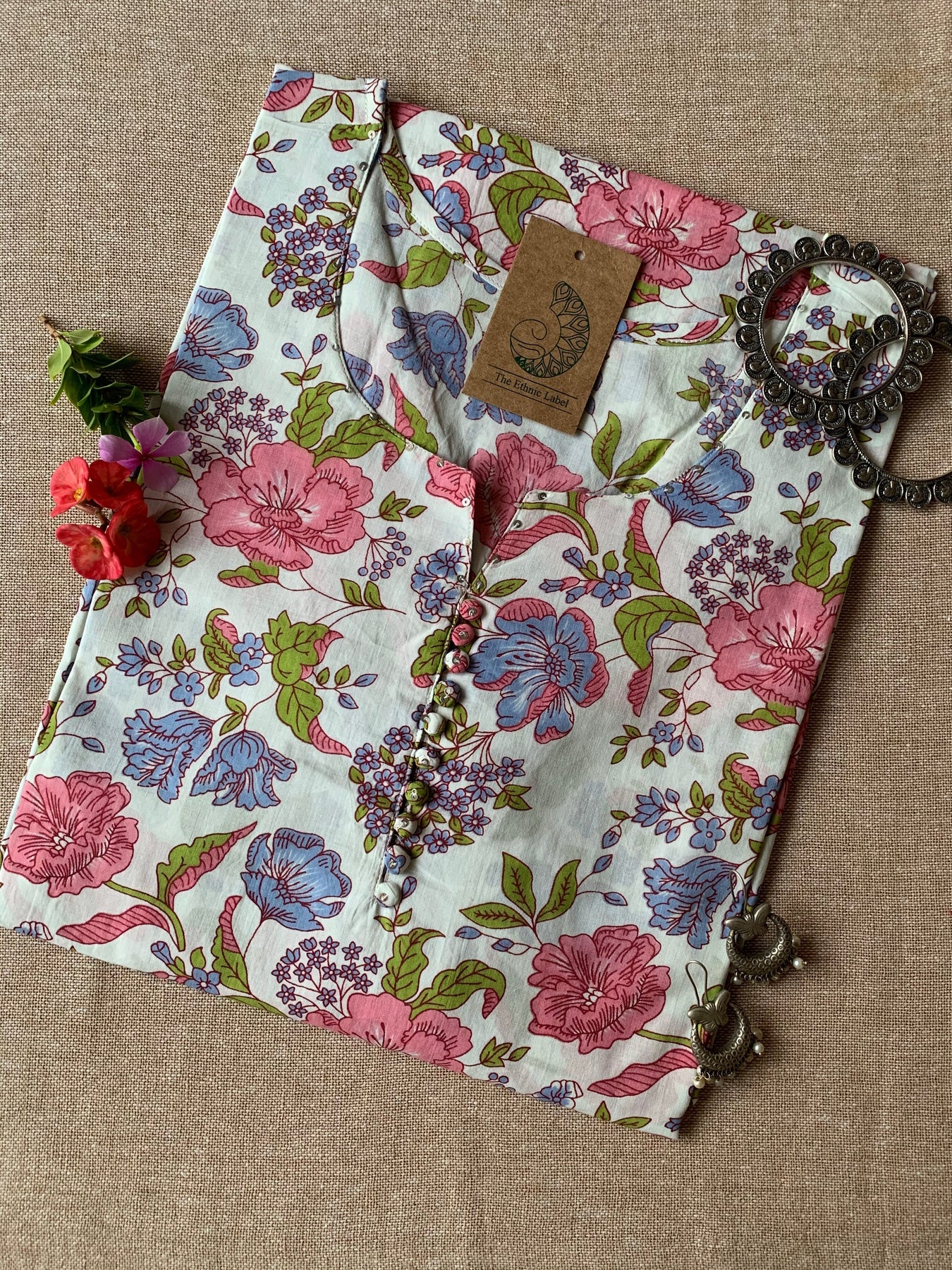 "Bageecha" Hand Block Printed Buttoned Cotton Kurta - M