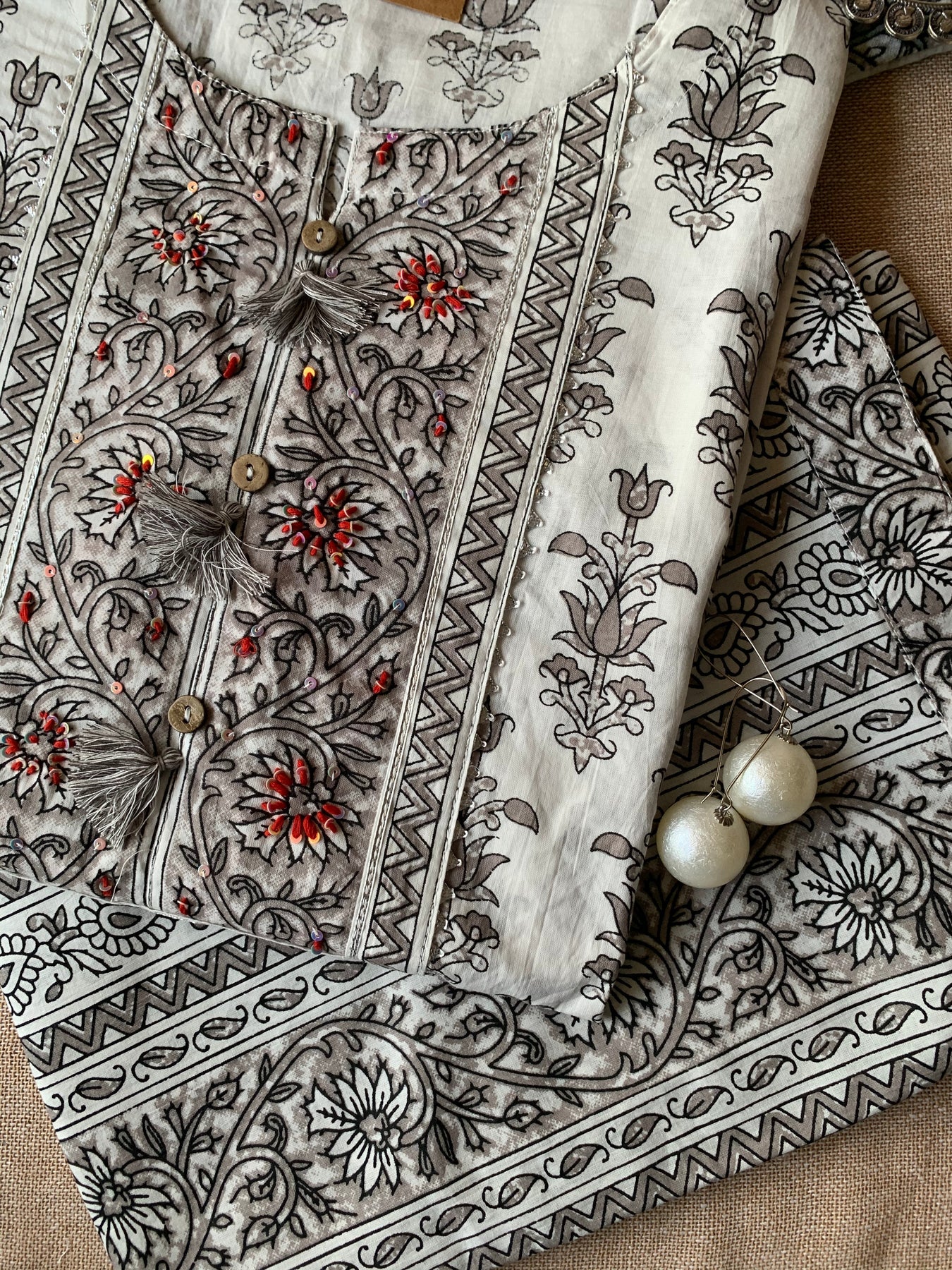 Minimal, classic and chic, this kurta is designed for all the days you want to keep things special and subtle. Inspired by the art of hand block printing, this kurta set is a piece of art. The kurta comes with a unique embroidery work in the yoke that gives an elevated touch to its royal colour and cotton fabric.